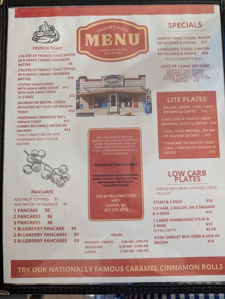 Welcome to Sherrie's Place, your cozy dining destination in Casper, WY, where delicious American cuisine meets a warm, relaxed atmosphere. Specializing in breakfast, lunch, and dinner, we take pride in our exceptional coffee, mouthwatering desserts, and local specialties. Whether you're dining solo, with family, or in a group, enjoy our accessible seating and amenities, including takeout and delivery services. With a commitment to quick service and an inviting ambiance, Sherrie's Place is perfect for any meal. Come savor the tradition of home-style comfort food, complemented by friendly service that keeps our guests coming back for more!